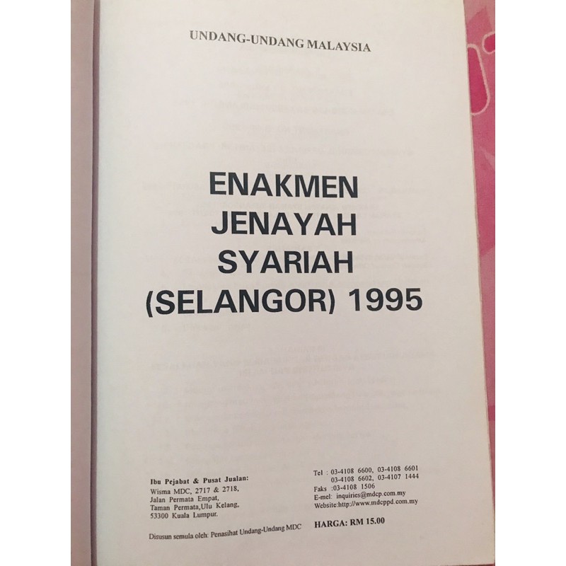 Enakmen Jenayah Syariah Selangor 1995 Hingga 10hb November 2017 Shopee Malaysia